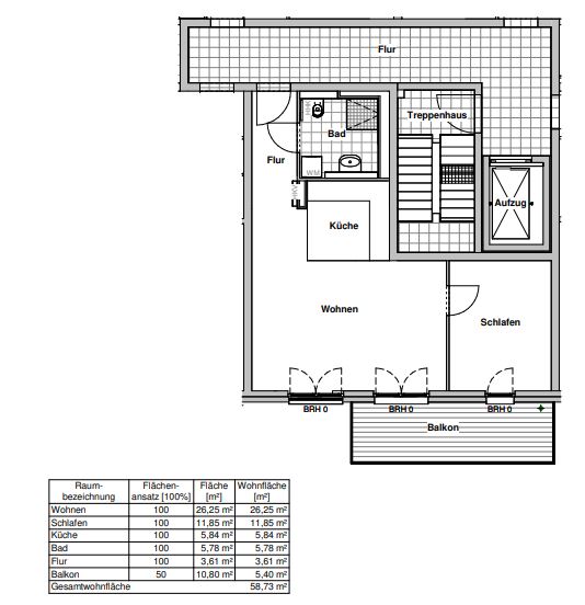 Wohnfläche: ca. 58,73 m²