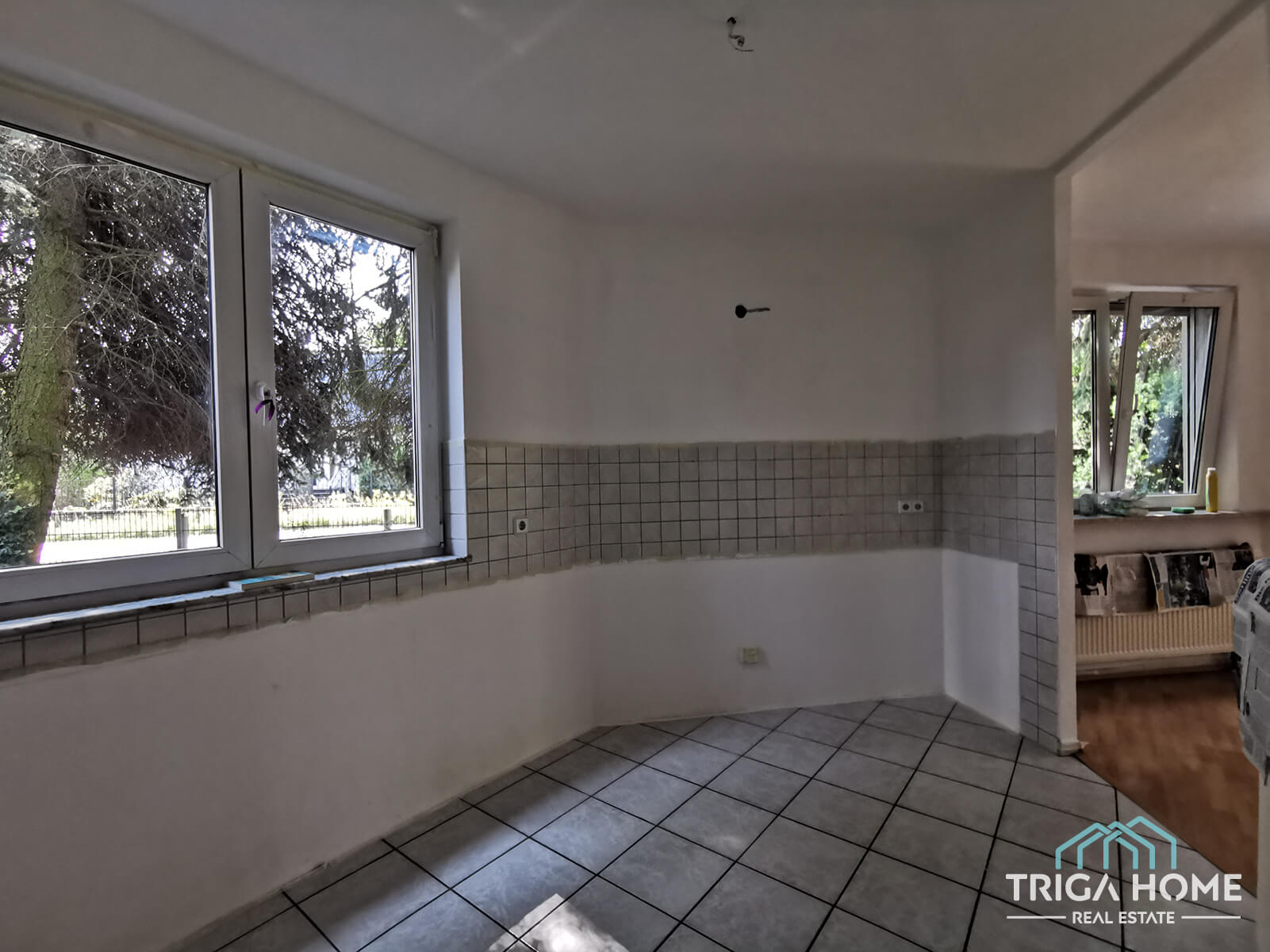 Ausstattung: Laminat, Fliesen, Raufasertapete, 2-fach Isolierverglasung, Keller